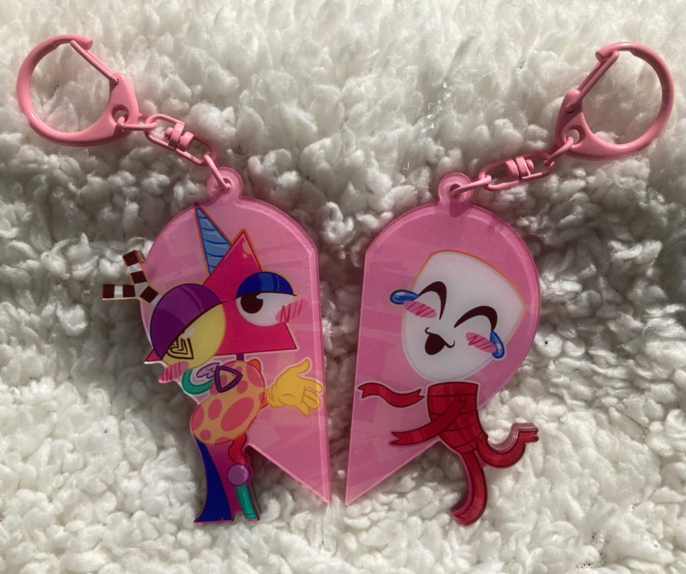 Pair of matching magnetic acrylic keychains, featuring everyone’s favourite doomed yuri pairing!
